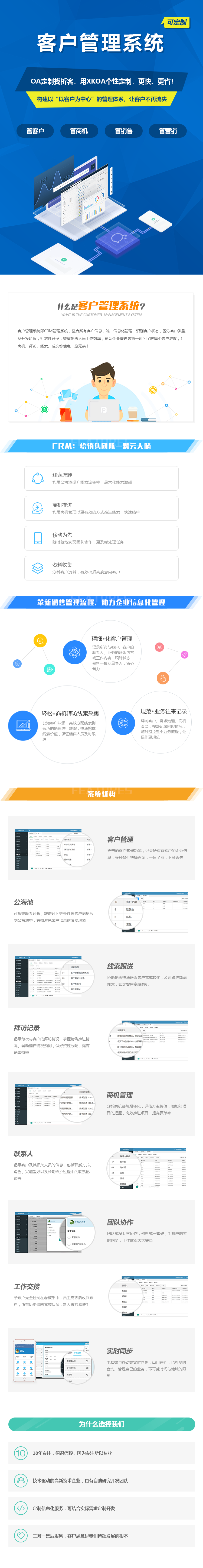客户管理系统即CRM管理系统,整合所有客户信息,统一信息化管理,识别客户状态,区分客户类型及开发阶段,针对性开发,提高销售人员工作效率,帮助企业管理者第一时间了解每个客户进度,让商机、拜访、线索、成交等信息一览无余!